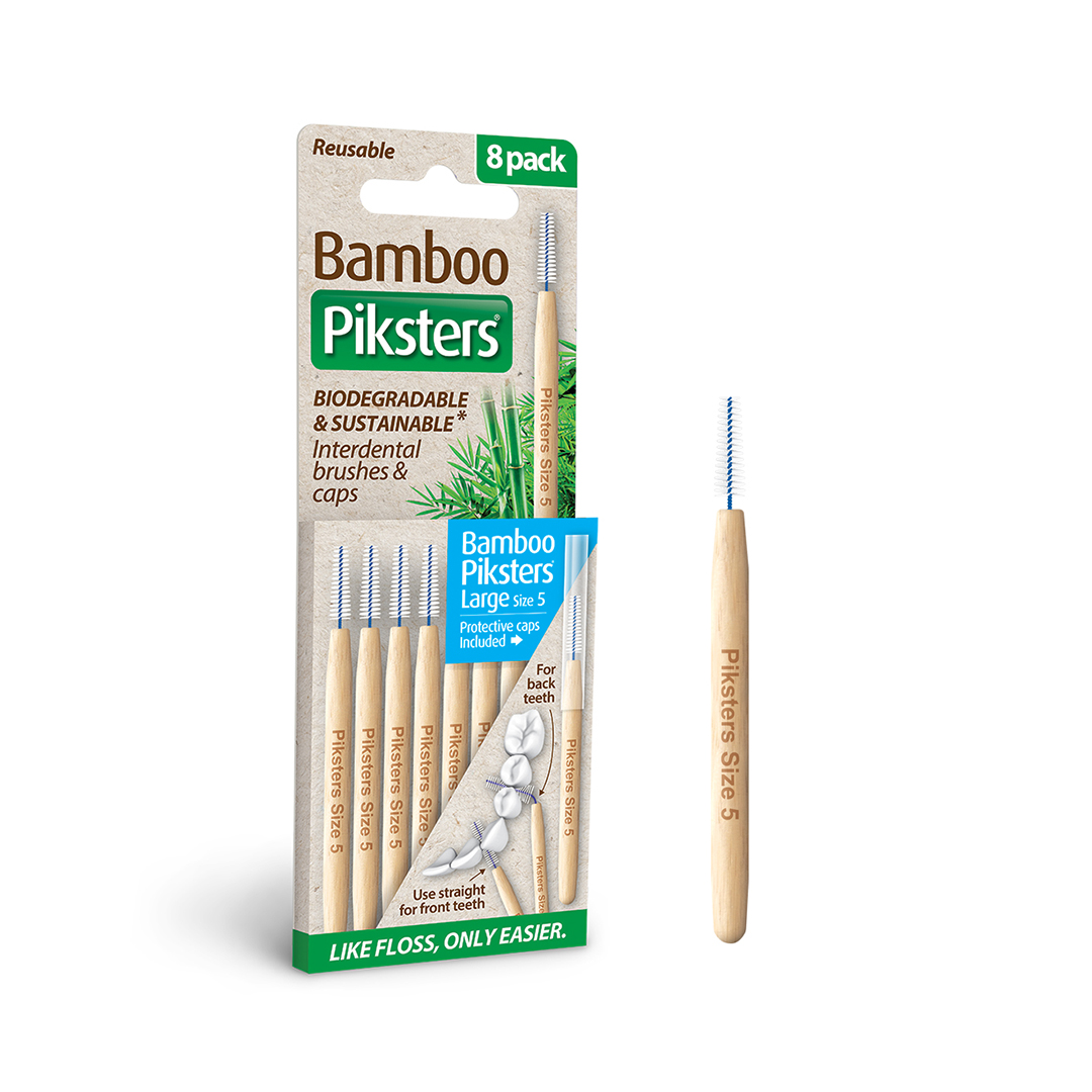 The Piksters Family is Growing! Bamboo Piksters are identical to traditional Piksters Interdental Brushes but reduce plastic waste, are sustainably sourced and 97% biodegradable.